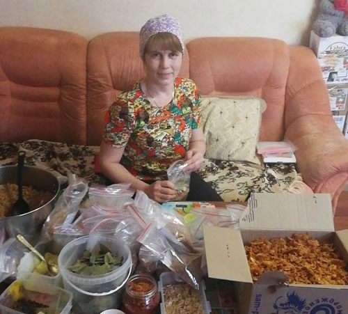 «Супы упаковываем так, чтобы одной пачки хватало на четырёх бойцов. А выпечку, чтобы продлить срок хранения, помещаем в вакуум. По специальному рецепту из нутряного сала делаем паштеты. Словом, стараемся помочь нашим бойцам во всём», – отметила руководитель движения Елена Алексеева.