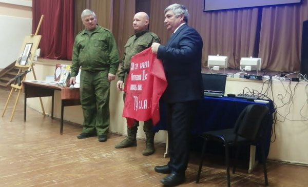 Военный поделился со школьниками историями солдатских будней, а также передал учебному заведению копию боевого знамени батальона «Тимер», на котором расписались бойцы. По словам директора учебного заведения, знамя установят в холле школы в память о воинах, защищавших свою Родину.