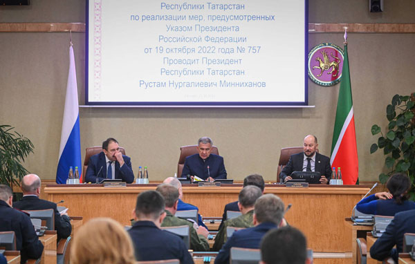 Президент Республики Татарстан Рустам Минниханов провёл сегодня в Доме Правительства первое заседание оперативного штаба по реализации мер, предусмотренных указом Президента Российской Федерации. Напомним: ранее глава государства поручил руководителям регионов создать оперативные штабы и взять на личный контроль вопросы обеспечения безопасности на своих территориях.