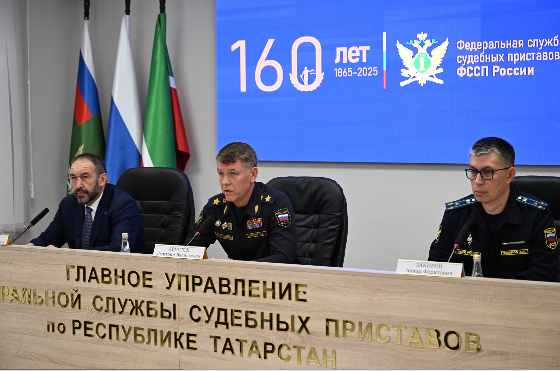 Дмитрий Аристов поблагодарил всех сотрудников за безупречную службу. Он подчеркнул, что в Татарстане взаимодействие органов государственной власти с управлением ФССП проявляется на всех уровнях. Это и исполнением судебных решений в отношении социально незащищенных категорий граждан, и обеспечение экономической безопасности топливно-энергетического комплекса и системы жилищно-коммунального обеспечения, др. Особо он поблагодарил ветеранов – за их добросовестную работу.