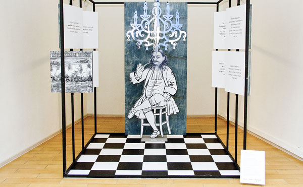 Рядом – вторая выставка из Петергофа, которая рассказывает о том, каким запомнили Петра в Европе. На ней представлены изображения российского императора в старинных западноевропейских изданиях – в виде инсталляций и цифровых копий.