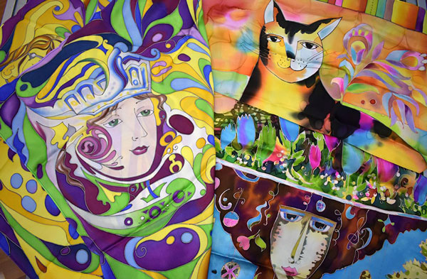 Все эти картины художники создали в Елабуге в разные годы во время арт-симпозиумов. Картины носят названия «Сабантуй», «Курбан-байрам», «Моя бабушка Рабига», «Песня о тюльпане», «Кот казанский» и раскрывают темы народных традиций и национального наследия. Эти мотивы перенесены на шёлк с помощью ручной росписи. Платки изготавливаются казанскими мастерами, а купить их можно только в художественном салоне музея-заповедника в Елабуге.