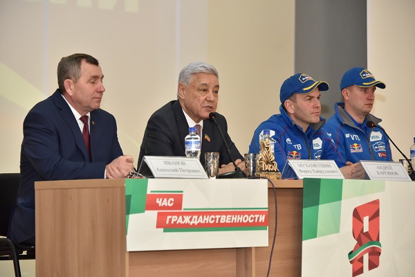 Кроме того, 26 февраля с участием победителей ралли-рейда «Дакар-2018» – пилотов легендарной команды «КАМАЗ-Мастер» Андрея Каргинова и Антона Шибалова – прошла акция «Пожелания Президенту». Жители района подходили к специально оборудованному стенду и оставляли свои записи в адрес будущего лидера страны. Пилоты именитой команды также ответили на вопросы студентов.