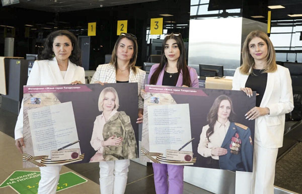 В Казанском международном аэропорту им. Г.Тукая запустили круглосуточную трансляцию фотопроекта «Жёны героев». Портреты нескольких десятков женщин, чьи мужья защищают Родину в зоне спецоперации, и строки из их писем появляются на информационных экранах авиарейсов.