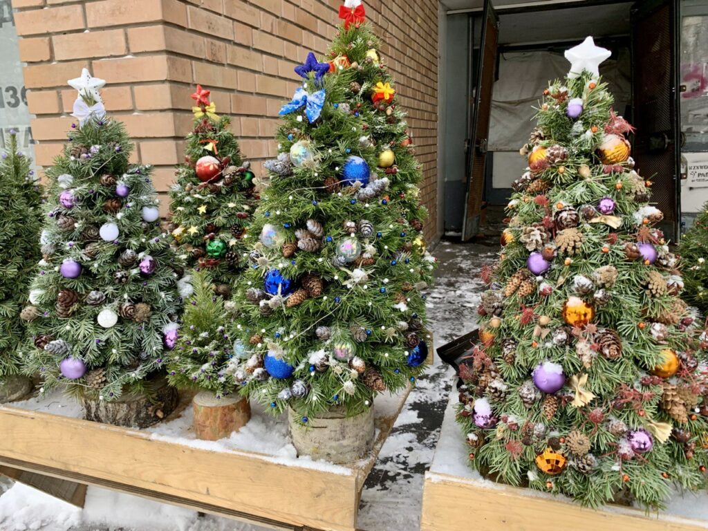 Новогодние композиции – маленькие елочки, собранные из отдельных веток и украшенные игрушками, продают как минимум за 3 тысячи рублей.