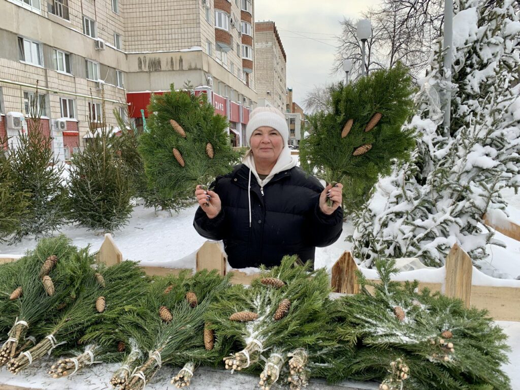 За 300 рублей можно приобрести еловый «веник», слегка украшенный шишками.