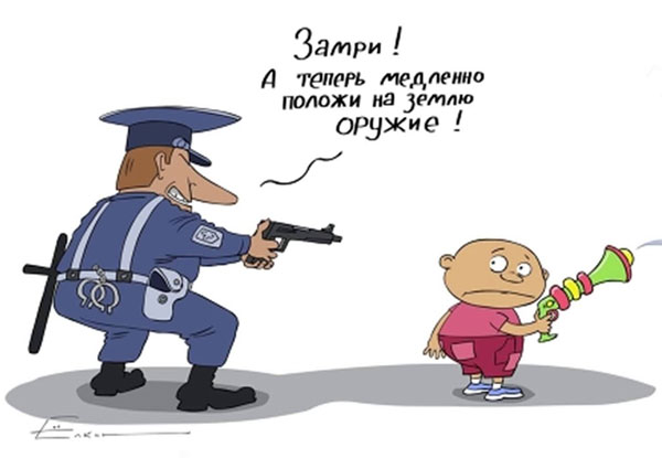 Сказано – сделано. Мальчонка берёт ружьё и кладёт на стол рядом с розеткой, делает руками манипуляции, означающие подключение зарядного устройства, после чего отчитывается: «Всё! Поставил заряжаться!»