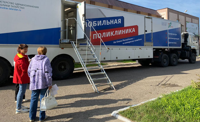 Мобильный комплекс Городской клинической больницы №7 имени М.Н.Садыкова в понедельник начал свою работу в поселке Васильево Зеленодольского района.