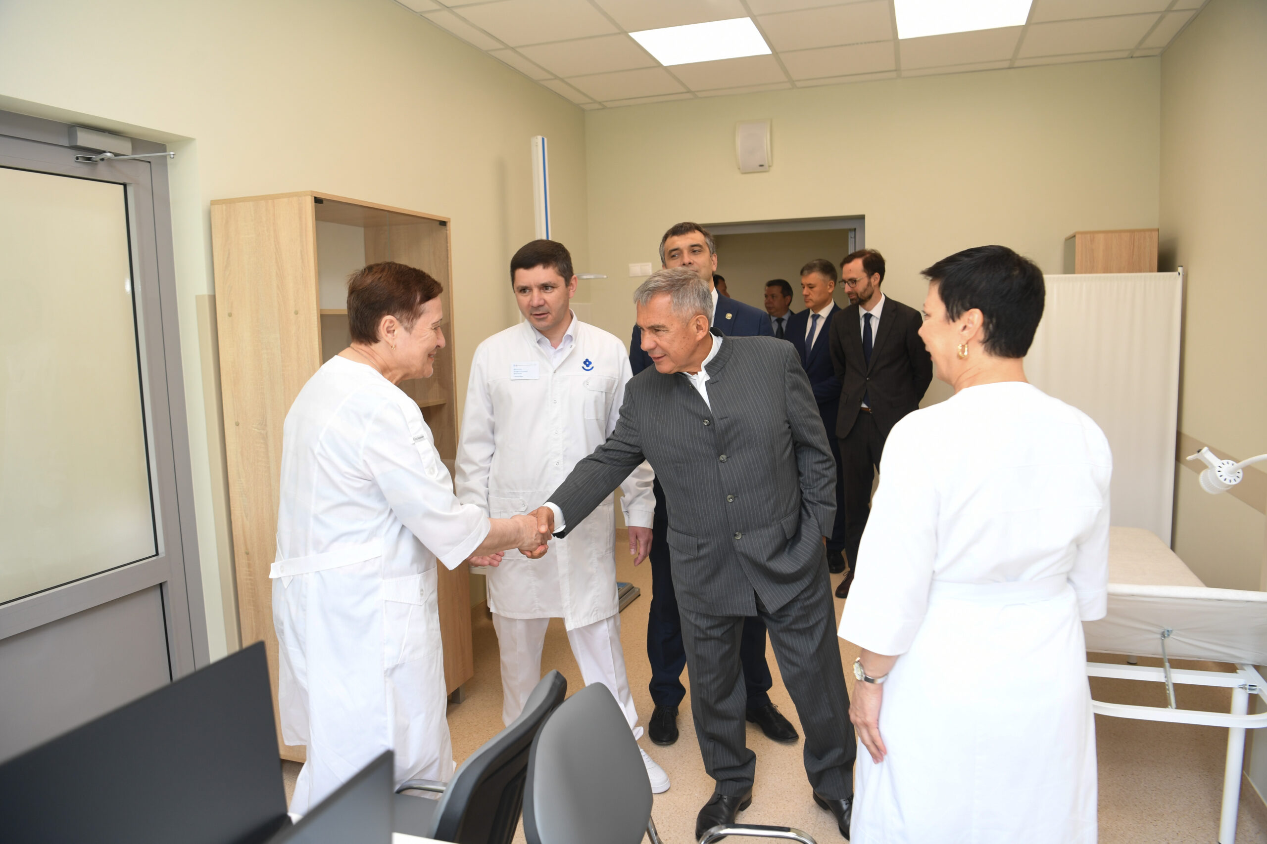 Рустам Минниханов осмотрел приемное отделение, педиатрический блок, кабинеты узких специалистов, кабинеты УЗИ и ЭКГ, помещение дневного стационара.