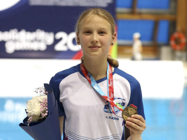 Воспитанница казанской спортивной школы «Акватика» Кира Хайруллина завоевала бронзовую награду на международных соревнованиях по прыжкам в воду III этапа «Игр дружбы», проходящих в столице Татарстана. Кира стала третьей в прыжках с трёхметрового трамплина.