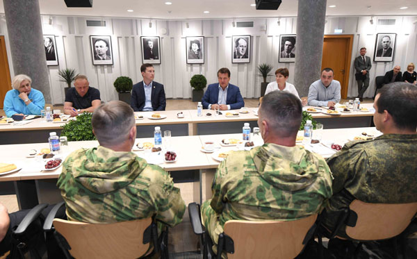 Встреча завершилась вручением наград. Так, двое военнослужащих по указу Президента РФ Владимира Путина получили медаль ордена «За заслуги перед Отечеством» II степени. Кроме того, военным вручили рюкзаки с гидраторами, коллиматорные прицелы, крепления на автомат, тактические аптечки и перчатки.