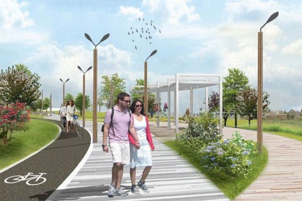 Строительство парковой набережной протяжённостью 890 метров планируется в два этапа. Первый участок практически достроен, оставшиеся элементы благоустройства будут выполнены после прихода тёплой погоды, сообщает пресс-служба мэрии. Общая площадь набережной вдоль жилого комплекса составит более двенадцати тысяч квадратных метров, из которых более восьми тысяч квадратных метров займёт зелёная зона. Парковую зону набережной разделят на верхнюю и нижнюю террасы. Некоторые объекты, например амфитеатр и пешеходные дорожки, будут сделаны из дерева. В парковой части запланированы прогулочная зона и велодорожка, которую соединят с общегородской велосипедной сетью. Предполагается, что общественное пространство станет частью набережной Ноксы, которая продлится до Мамадышского тракта.