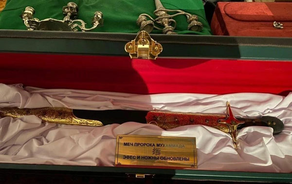 Среди экспонатов выставки реликвий Мухаммеда – меч и чаша для масла пророка, кувшин жены пророка Аиши, кувшин и ручная мельница дочери пророка Фатимы, чёрный камень Каабы, кувшин сподвижника Биляла, кольчуга и походная фляжка Халида бин аль-Валида, кинжал Абу Бакра ас-Сиддика.
