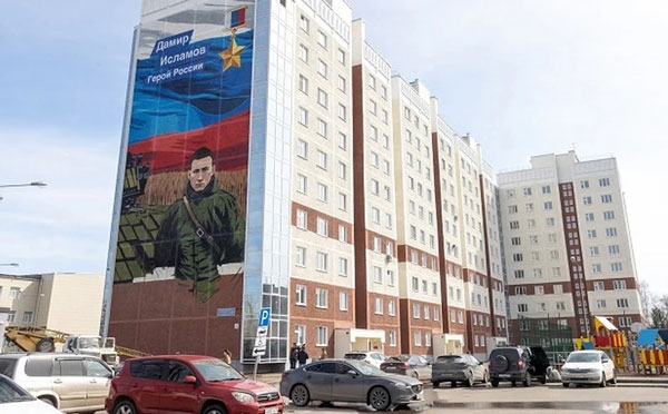 В апреле этого года на фасаде одного из домов второго военного городка в Казани появилось большое граффити с изображением воина-танкиста. С него на нас смотрит парень в военной форме с резко очерченным подбородком и суровым мужским взглядом. Автор мурала – известный татарстанский художник Азат Алеев. А изобразил он Героя России – танкиста Дамира Исламова.