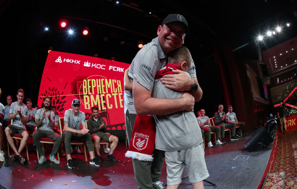 Сначала под аплодисменты зала представили всех новичков. Самый лаконичный спич произнёс Олег Иванов: «Здравствуйте, я Олег, 35 лет, футболист». А то, что хотели услышать собравшиеся, чётко сформулировал Артём Попов: «Большое спасибо, что пришли! Если мы будем вместе, у нас всё получится и мы будем радовать вас своими победами!»