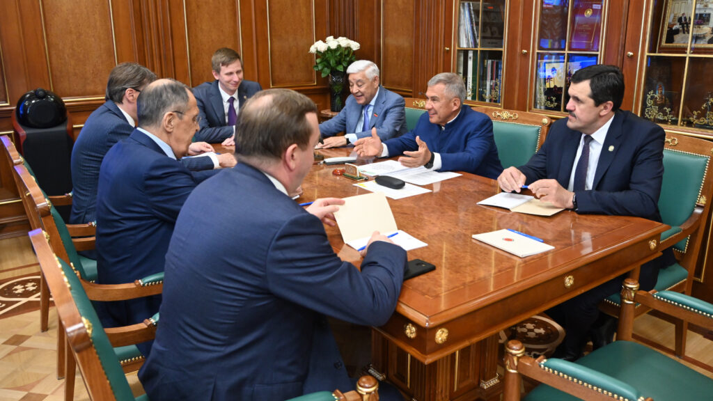 Раис Татарстана Рустам Минниханов встретился с министром иностранных дел Российской Федерации Сергеем Лавровым. Встреча состоялась в Казанском Кремле.
