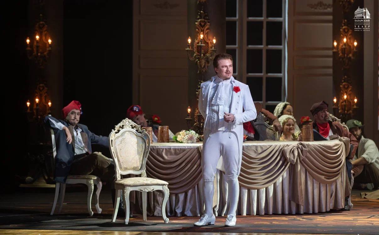 Спектакль «Пиковая дама» в версии того же Александрова ближе к пушкинскому источнику, чем к либретто оперы Чайковского. Мистика здесь – почти самостоятельный персонаж: черные фигуры приживалок, «каменный» Петербург, световые акценты. Визуальный образ получился холодным и зыбким, как сама судьба Германа. Партию Графини исполнила Ольга Бородина (Мариинский театр), чье появление на казанской сцене каждый раз невольно заставляет ностальгировать по тому времени, когда перехватывало дыхание от одного списка приглашенных солистов, в котором что ни имя, то мировая звезда.