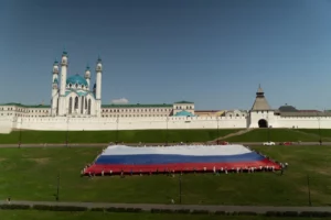В честь Дня флага Российской Федерации «Молодая Гвардия Единой России» совместно с Татарстанским отделением партии «Единая Россия» развернули 50-метровый триколор.