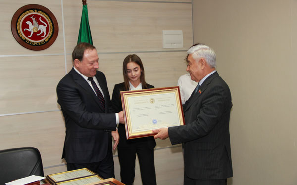 От имени руководства республики коллектив поздравил Председатель Госсовета Фарид Мухаметшин. Ведь именно 15 лет назад Государственным Советом республики был принят закон о Счётной палате Татарстана, признанный одним из самых передовых в Российской Федерации.