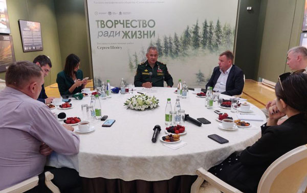 Журналисты интересовались и творчеством Сергея Шойгу, ведь в эти дни в Национальной художественной галерее «Хазинэ» в Казанском Кремле проходит выставка его работ «Творчество ради жизни», которая продлится до 12 сентября. Министр отметил, что занимается этим по настроению, творчество является для него «отдушиной», позволяющей отвлечься от каждодневной напряжённой работы.