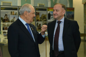 Минтимер Шаймиев представил директору Департамента по гуманитарному сотрудничеству и правам человека МИД РФ экспозицию о деятельности Республиканского Фонда «Возрождение» по сохранению историко-культурного наследия, рассказал о реализованных фондом проектах по возрождению древнего города Болгар и острова-града Свияжск, строительству Болгарской исламской академии, воссозданию Собора Казанской иконы Божией матери и созданию полилингвальных образовательных комплексов «Адымнар».