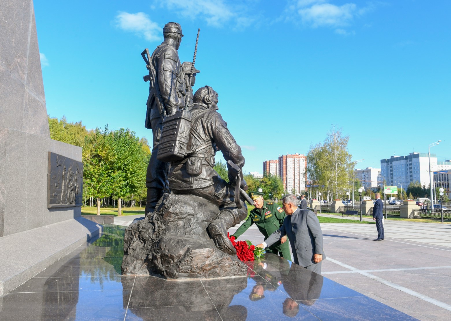 Министр обороны России Сергей Шойгу и Президент Татарстана Рустам Минниханов возложили цветы к памятнику погибшим при исполнении интернационального воинского долга, призванным из Республики Татарстан.