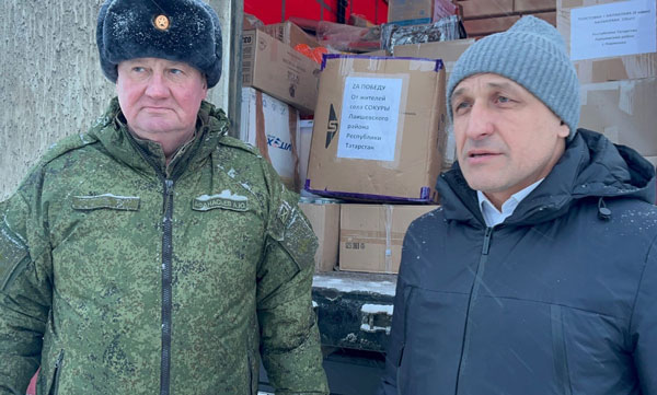Отдельный груз в зону СВО для своих земляков направил Апастовский район. Свой вклад в комплектование партии гумпомощи внесли депутаты Госдумы – тёплые вещи (Марат Нуриев) и 20 тонн бытовой химии (Ирек Богуславский). В фуры погрузили также полтонны блиндажных свечей от депутата Госсовета Татарстана Рината Гайзатуллина, несколько коробок с тушёнкой – от члена регионального штаба Общероссийского Народного фронта Алексея Кокурина.