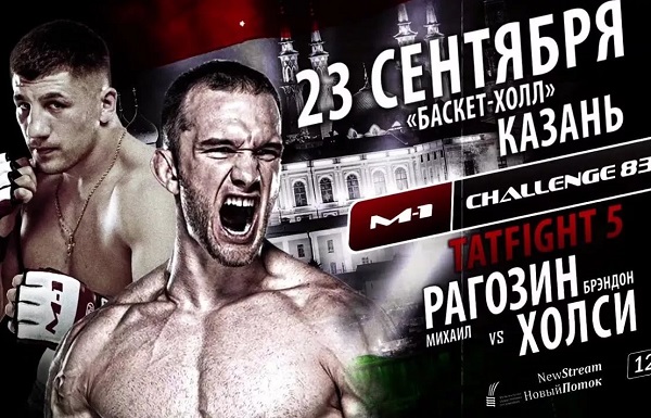 В Казани 23 сентября впервые пройдет международный турнир по ММА М-1 Challenge 83 TATFIGHT 5. Главным боем вечера станет поединок в полутяжелом весе между двукратным чемпионом Bellator американцем Брэндоном Холси и учеником легендарного Александра Шлеменко – чемпионом России по панкратиону Михаилом Рагозиным. Также в его рамках состоится первый в истории организации бой за титул чемпиона в наилегчайшем весе. Финалисты Гран-при в весовой категории до 56,7 кг чемпион Украины по смешанным единоборствам Александр Доскальчук и боец из Сыктывкара Вадим Малыгин сойдутся в бою за этот титул. Всего зрители увидят более десятка захватывающих зрелищных боев с участием лучших бойцов России, США, Бразилии, Германии, Казахстана и Грузии, а Татарстан на этом турнире представят лучшие бойцы из Казани – Руслан Хисамутдинов из клуба «Дивизион», Кирилл Кузьмин, представляющий клуб «Барс профи» и Ленар Сулейманов.