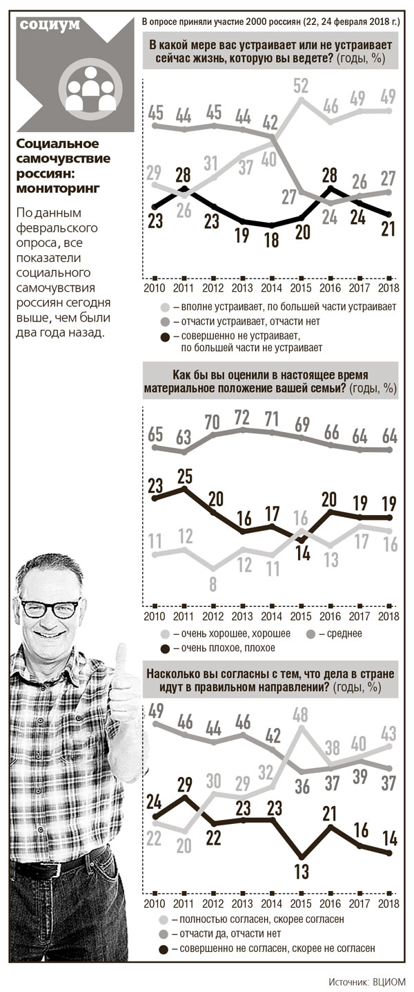 По данным февральского опроса, все показатели социального самочувствия россиян сегодня выше, чем были два года назад.