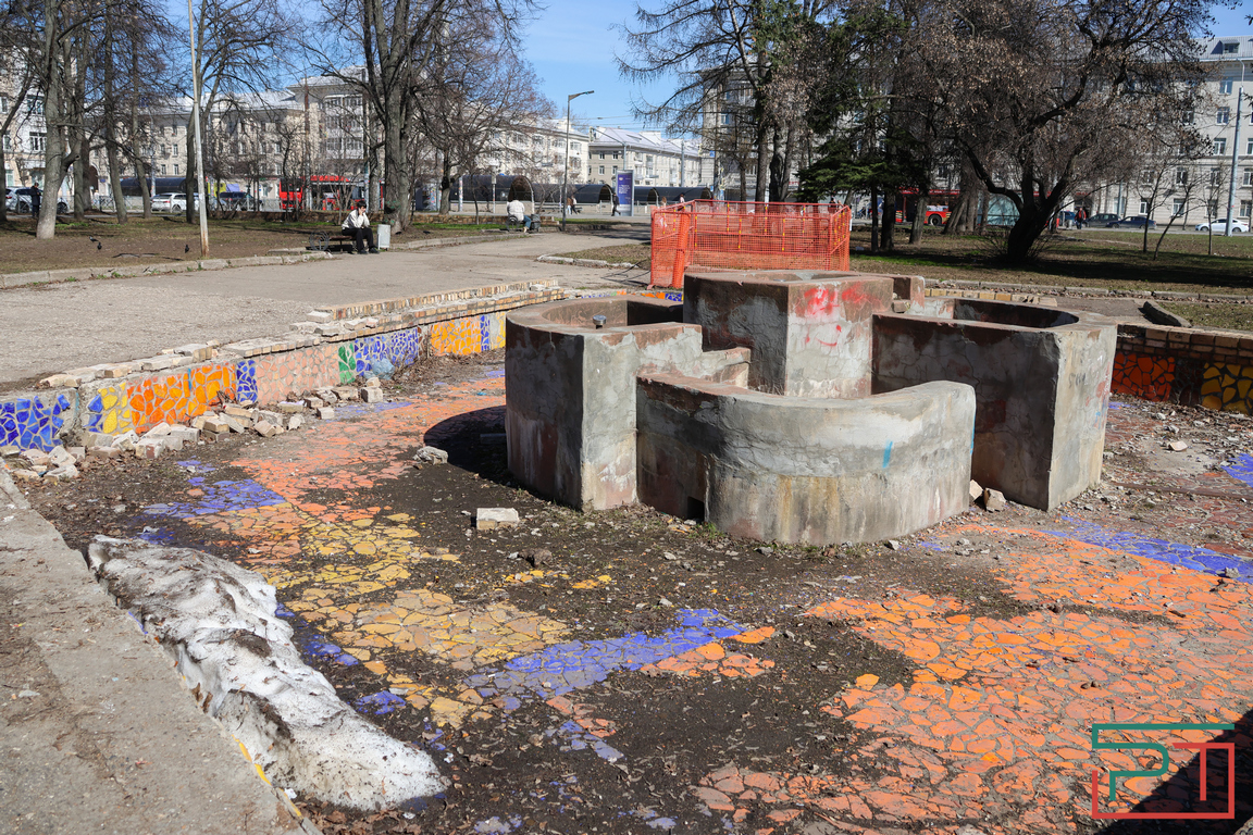 – Мы смотрели исторические карты, фотографии, и нам показалось, что фонтан, который был здесь в 60-е годы, больше подходит к этому месту, – объяснил позицию архитекторов Рузаль Фархуллин. – Мы за мозаику и за сохранение фонтана, но есть ограничения – сети, которые не позволяют капитально отремонтировать и запустить существующий фонтан.