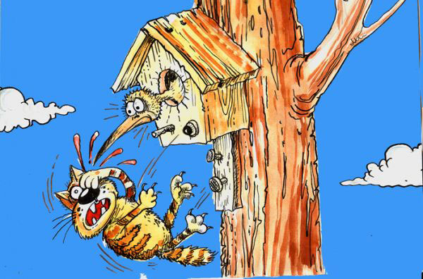 Выходим с сестрой во двор, в центре которого стоит очень крепенький частный дом довоенной постройки. Через двор не спеша идёт серая ворона... Идёт, каждый камешек рассматривает (вдруг бриллиант какой?), иногда ходит кругами... Такое поведение не могло остаться безнаказанным – ворону замечает здоровенный кошак, который тихонько подкрадывается к добыче, до которой 10–12 метров. Явно увидев опасность, но не подав виду, ворона медленно спрямляет свой путь и исчезает за углом дома. Котик, понявший, что его «обед» не видит приближения врага, летит за угол... А там четыре вороны одновременно кидаются на него, со всех сторон долбят клювами неразумную голову, щиплют шкуру. Пятая, заманившая кота в западню, сделав перед носом ушастого «мёртвую петлю», приземляется сзади жертвы и начинает изо всей силы дёргать за хвост. Кот, не выдержав натиска, спасая свою шкуру и остатки самолюбия, позорно оставляет поле избиения за победителями... Такую спецоперацию я увидел в жизни впервые.