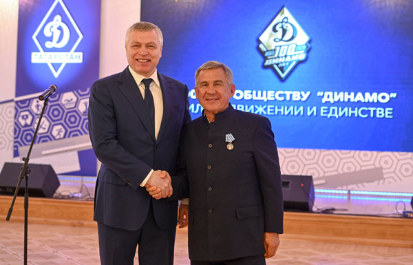 В свою очередь Анатолий Гулевский вручил юбилейные медали в честь 100-летия общества «Динамо» Рустаму Минниханову и Асгату Сафарову, сообщает пресс-служба Раиса РТ.