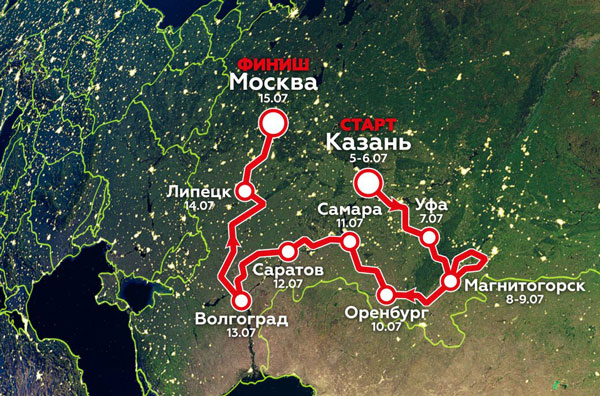 Ралли-рейд стартует 6 июля 2023 года на площади Тысячелетия в Казани и продолжится до 15 июля, когда финиширует в Москве. Ралли планируется провести на территории 13 субъектов страны, среди которых есть и те, которые не были задействованы ранее, – Оренбургская, Самарская и Саратовская области, а также город Магнитогорск Челябинской области.