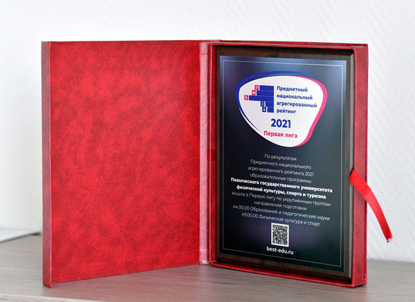 Поволжский государственный университет физической культуры, спорта и туризма занял третье место среди спортивных вузов России по итогам 2021 года, уступив только Российскому государственному университету физической культуры, спорта, молодёжи и туризма и Сибирскому государственному университету физической культуры и спорта. Это данные Национального агрегированного рейтинга, который оценивает не только вузы в целом, но и образовательные программы в рамках одной предметной области. Так, два года подряд образовательная программа Поволжского университета по группе направлений «Физическая культура и спорт» входит в первую лигу Предметного национального агрегированного рейтинга, что говорит о высоком уровне реализации программ и качества образования в целом.
