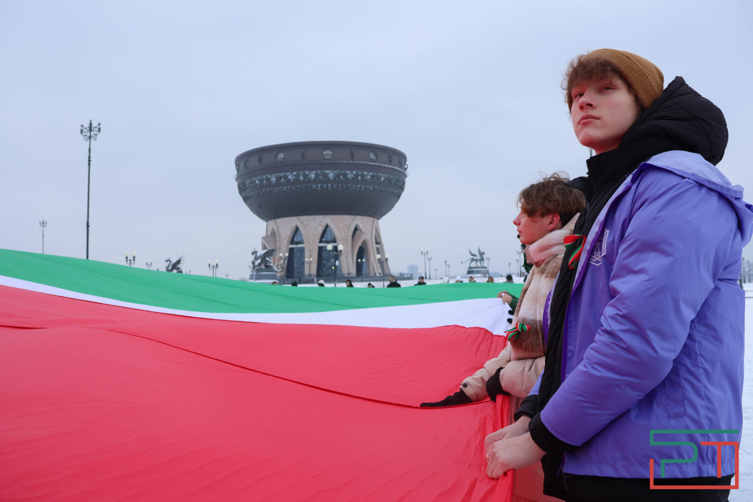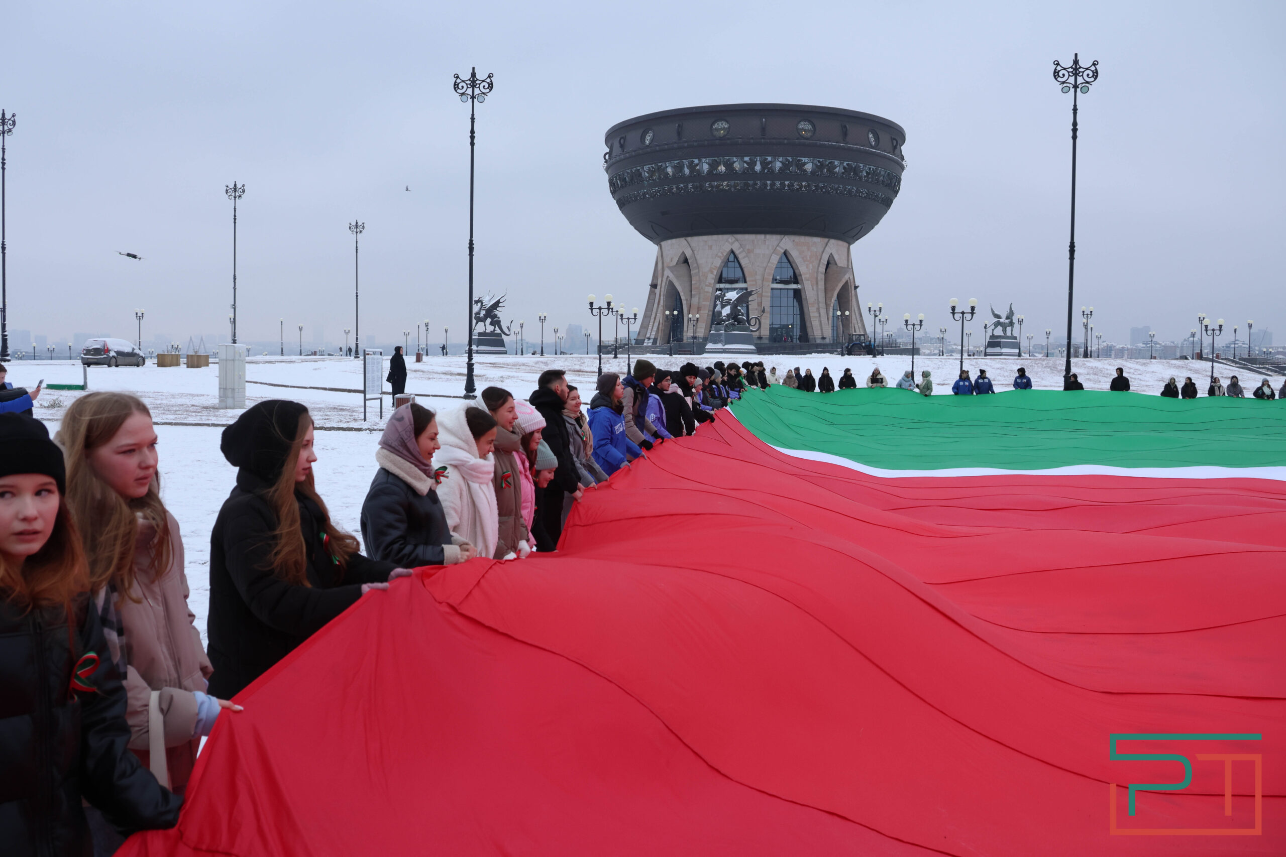 Школьники и студенты в Казани развернули самый большой флаг Татарстана