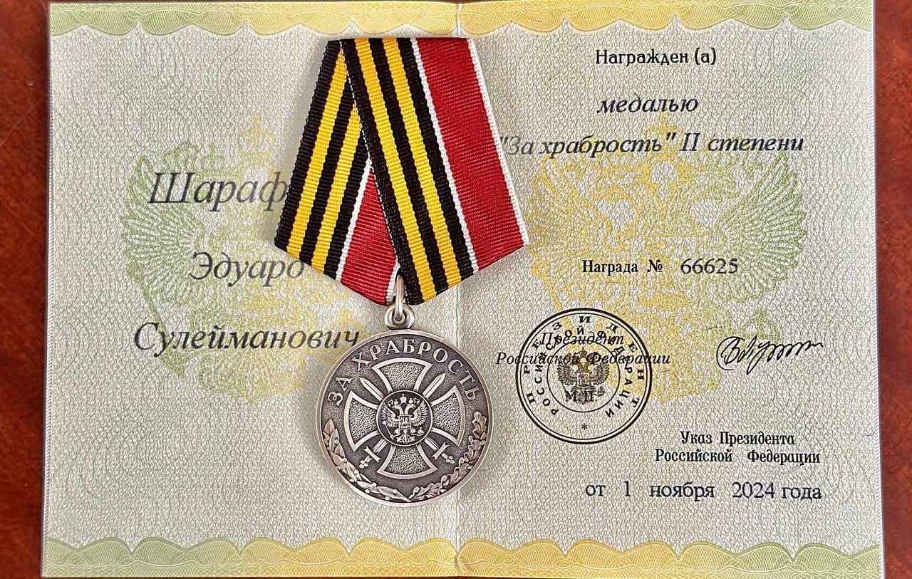 Депутату Госсовета Эдуарду Шарафиеву вручили медаль «За храбрость» II степени