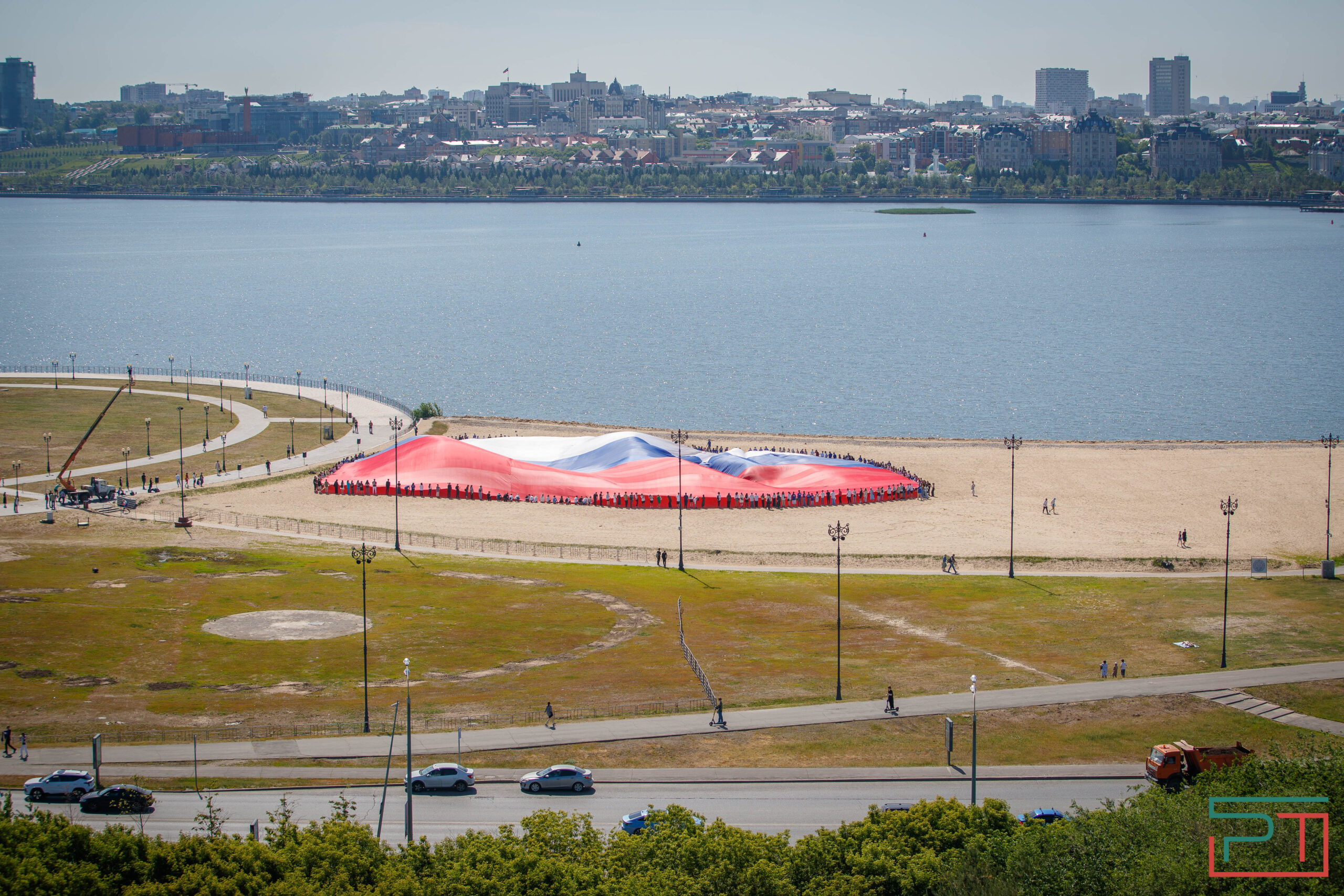 Более 500 человек развернули в Казани гигантский флаг России – фото