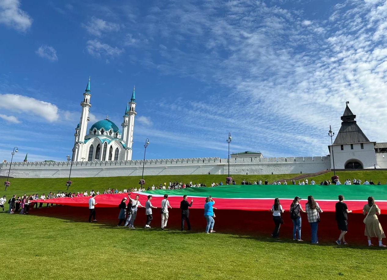У Казанского Кремля более 200 человек развернули самый большой флаг Татарстана