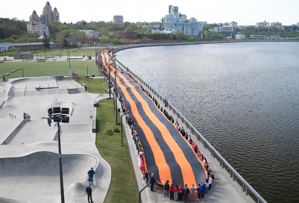 В Казани развернули крупнейшую в России Георгиевскую ленту в 300 метров