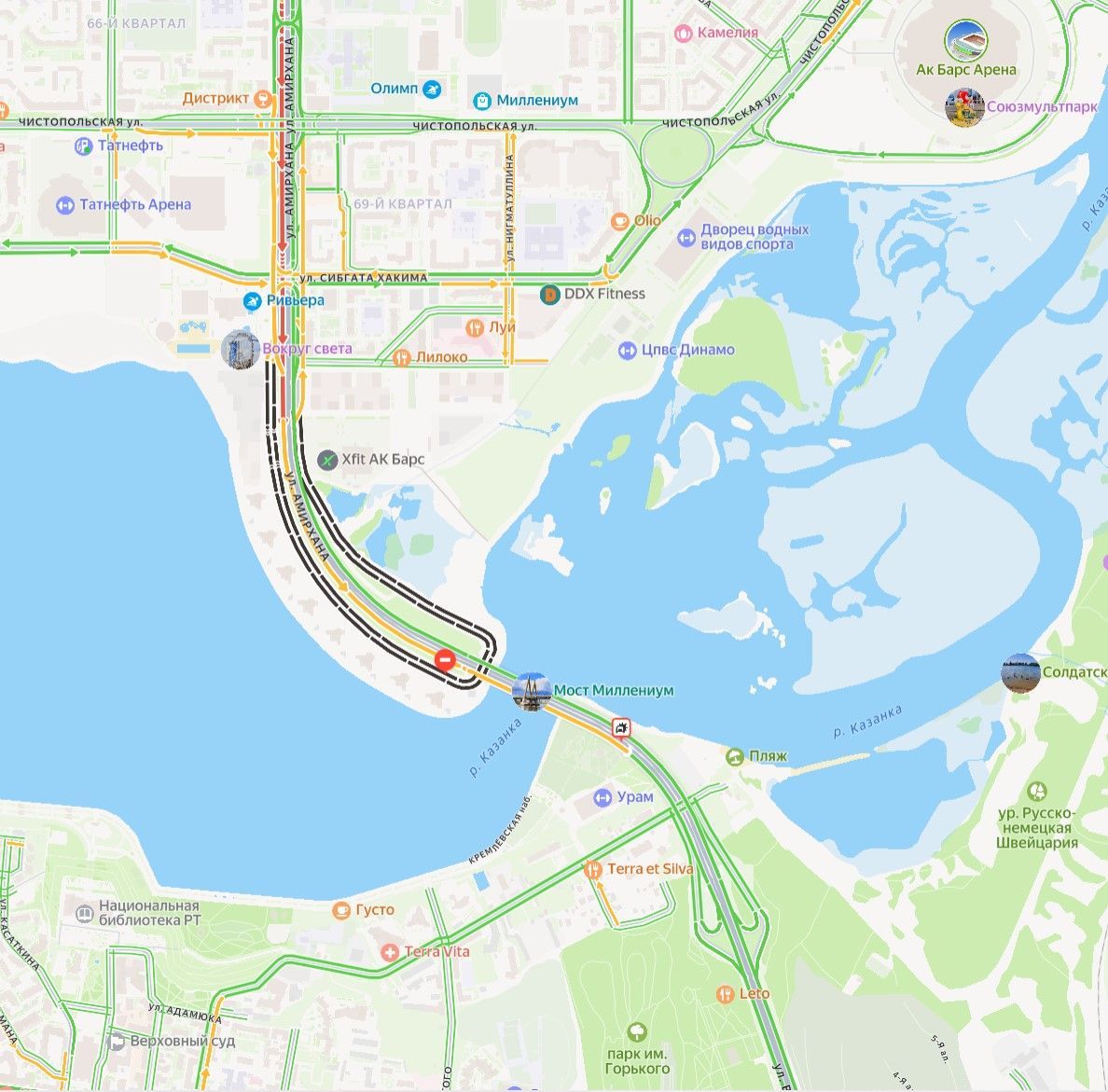 На разворотной петле под мостом "Миллениум" в Казани ограничат движение