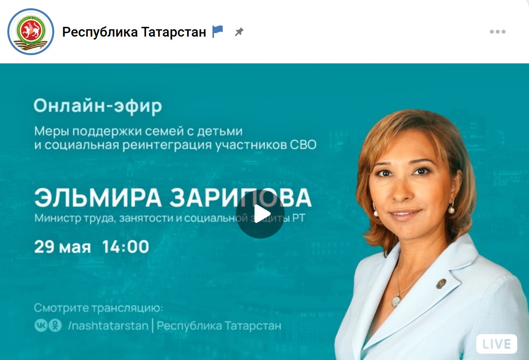 Глава Минтруда РТ расскажет о мерах поддержки семей с детьми и ветеранов СВО