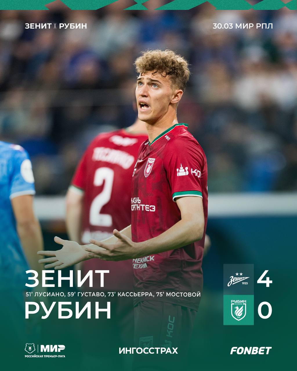 Рахимов о проигрыше «Зениту»: мы совершили глупость, когда с контратаки пропустили гол