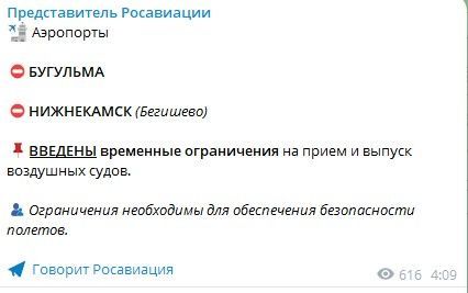 Аэропорты Нижнекамска и Бугульмы закрыли вслед за аэропортом Казани