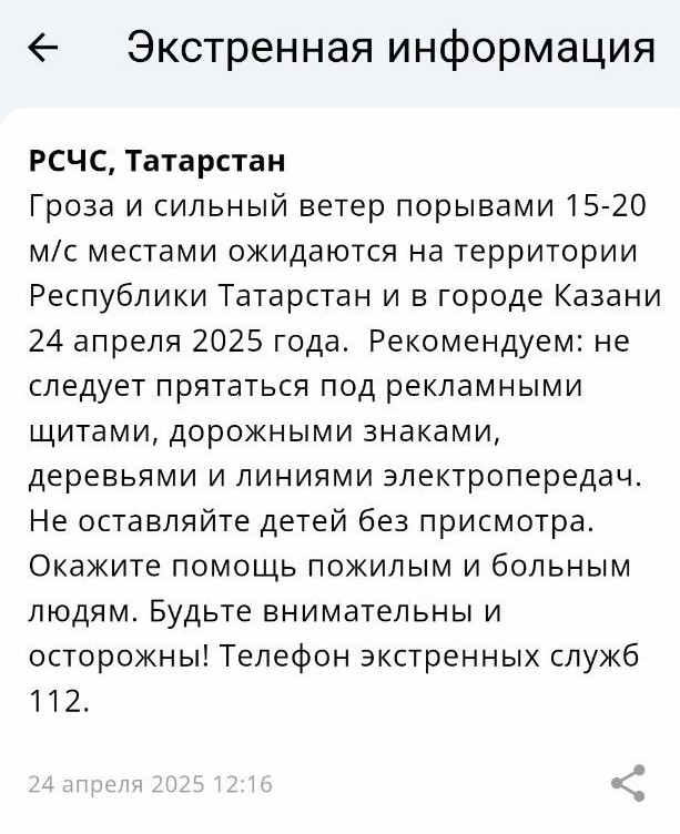 МЧС: 24 апреля в Татарстане ожидаются грозы и сильный ветер
