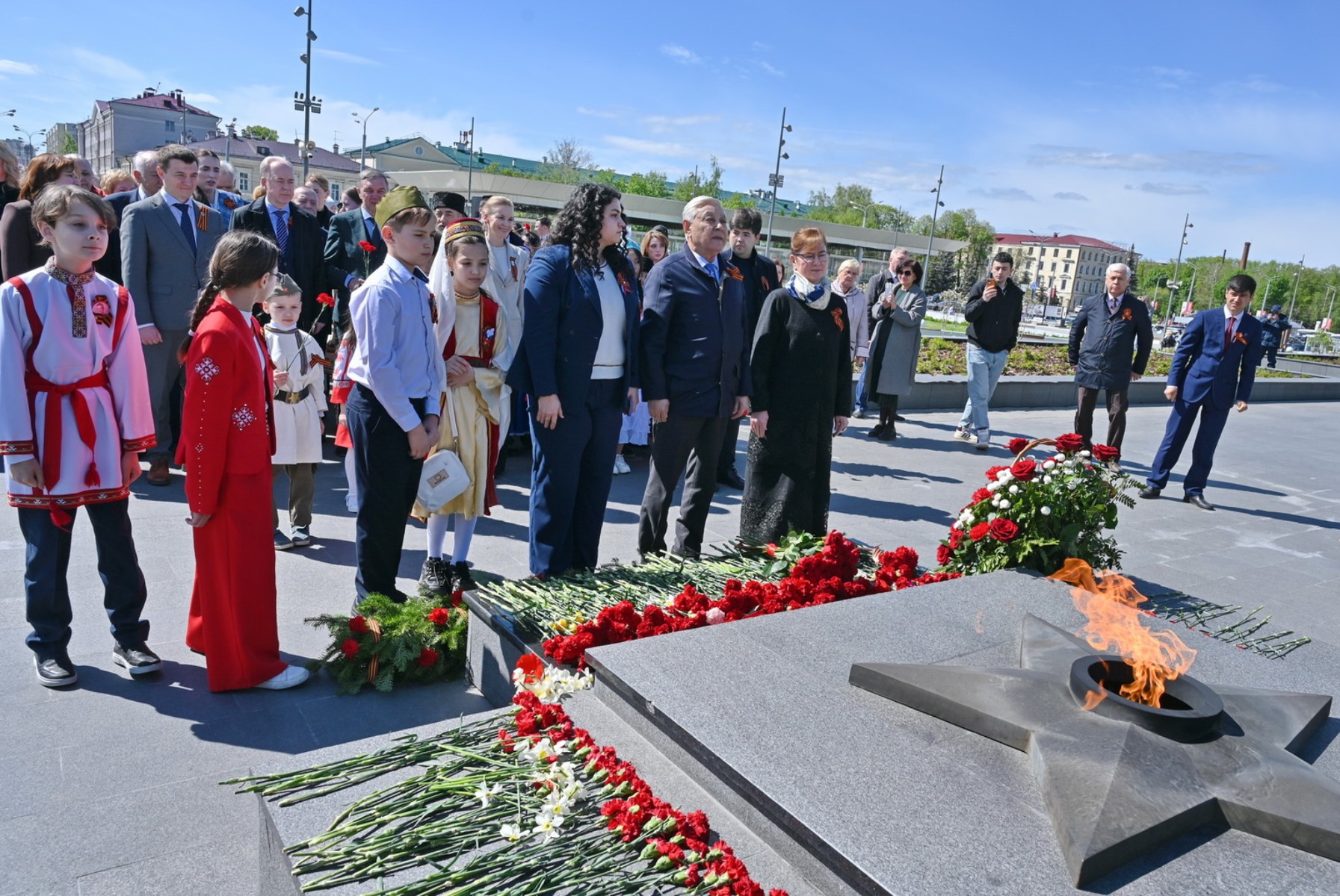 Главы парламентов субъектов ПФО возложили цветы к вечному огню в Парке Победы Казани