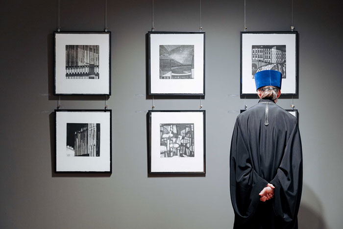 Напомним, что офорт – это разновидность печатной графики. Эта техника предполагает создание рисунка на металлической поверхности путем протравливания азотистой кислотой линий и других элементов изображения. Для создания сложных композиций процесс травления приходится повторять несколько раз. И только после этого на печатную форму наносится краска, с помощью офортного станка выполняется оттиск на бумаге. До этого момента художник никогда не знает точно, что у него получилось.