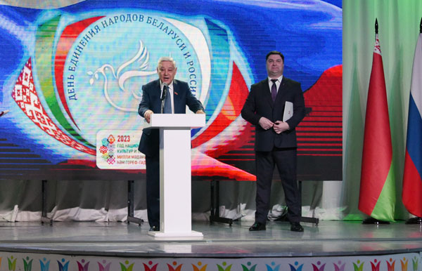 «27 лет назад, 2 апреля 1996 года, был подписан договор о создании Сообщества России и Беларуси, положивший начало российско-белорусской интеграции. Это историческое событие ознаменовало собой начало качественно нового этапа сближения дружественных государств, – подчеркнул Фарид Мухаметшин, открывая мероприятие. – Нас объединяют общая история, единые культурные и духовные ценности, близость языков – мы без переводчика понимаем друг друга». По словам руководителя татарстанского парламента, активное развитие политических, экономических и торговых связей стало прочной опорой для дальнейшего укрепления взаимовыгодного сотрудничества народов обеих стран вне зависимости от исторической или геополитической конъюнктуры. «Татарстан всегда был в авангарде интеграционных процессов. С Беларусью нас связывают глубокое уважение и взаимный интерес, – сказал Фарид Мухаметшин. – Многие годы мы развиваем конструктивные партнёрские связи, выстраиваем плодотворное взаимодействие. Достаточно отметить, что на протяжении десяти лет Республика Беларусь входит в пятёрку основных внешнеторговых партнёров Татарстана, объём товарооборота приблизился к отметке один миллиард долларов. С 2011 года в Казани работает отделение посольства Беларуси в России».