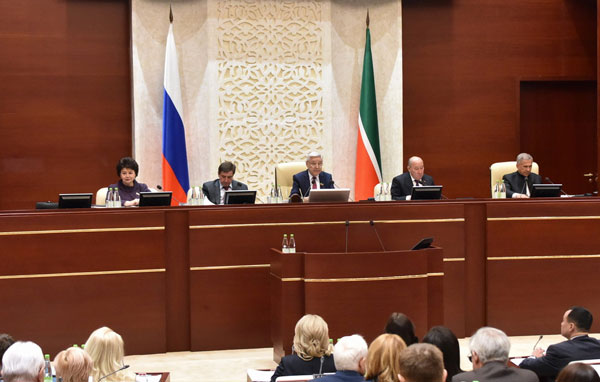 В работе депутатского корпуса принял участие Раис Татарстана Рустам Минниханов, заседание провёл Председатель Госсовета Фарид Мухаметшин. До начала обсуждения повестки, Фарид Мухаметшин напомнил основные постулаты Послания Президента России Владимира Путина Федеральному Собранию РФ. Глава страны прочитал Послание накануне, 21 февраля. В составе делегации от Татарстана были Раис РТ Рустам Минниханов, руководитель татарстанского парламента Фарид Мухаметшин.