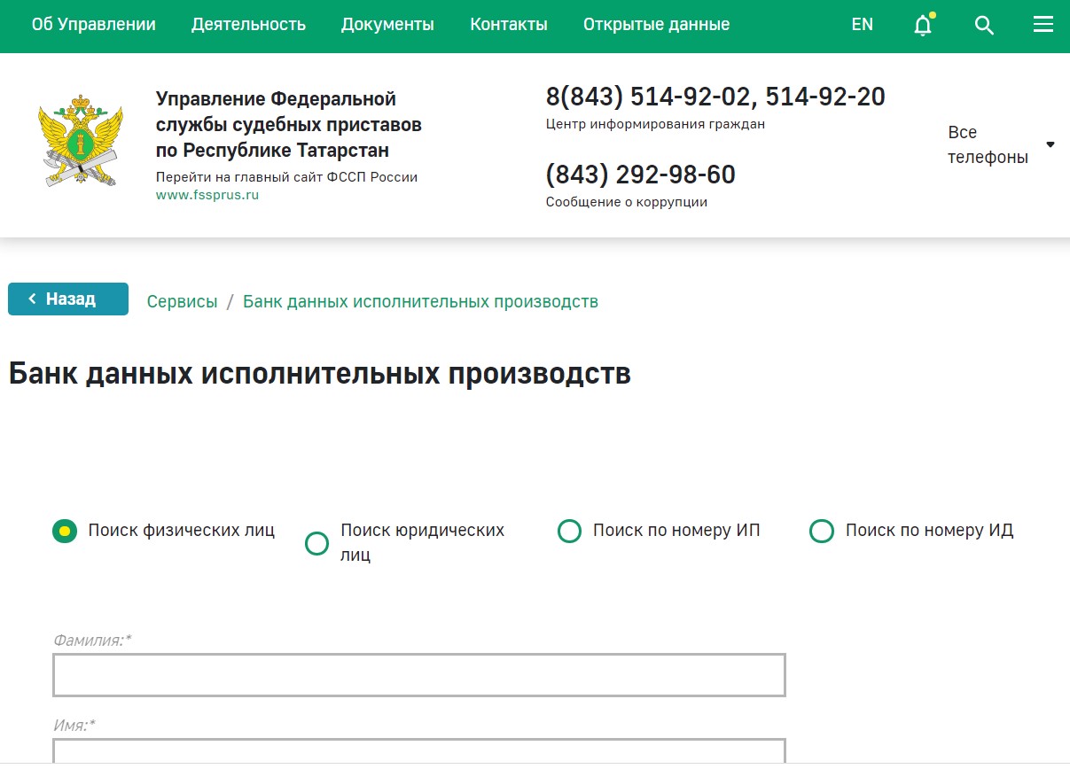 Для получения информации в «Банке данных исполнительных производств» о наличии задолженности необходимо в разделе «Узнай о своих долгах» на сайте УФССП России по РТ ввести личные данные. В режиме онлайн можно оплатить долг или распечатать квитанцию для оплаты в банке. Информацию об ограничениях можно узнать у судебного пристава-исполнителя либо в «Личном кабинете стороны исполнительного производства».