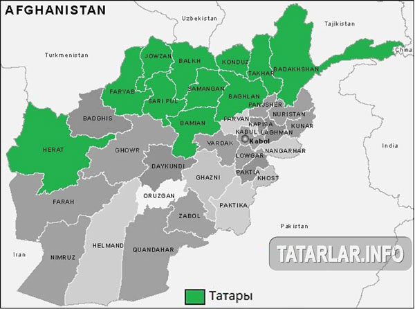На данный момент в Афганистане, в основном в северных провинциях, проживает около 500 тысяч татар. Причём это только те, что обозначены татарами в паспортах и метриках. Немало этнических татар записаны как узбеки, таджики и некоторые другие национальности